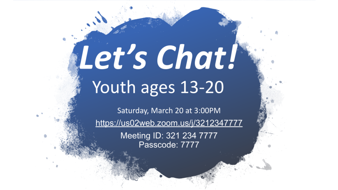 Zoom Video ConferenceThis Saturday, we invite you and other youth from ages 13- 20 to chat with each other, find out what you've been up to during the pandemic and create some […]